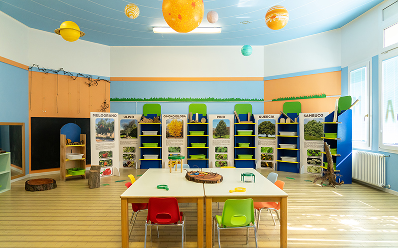 Un ampio spazio dove svolgiamo attività motoria, i laboratori artistici e di musica propedeutica e il riposo pomeridiano per i più piccoli.